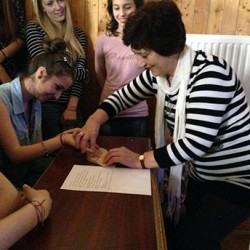 Ezek után következett az előadás interaktív része: a terem egyik felébe csoportosultak a lányok, a másikba a fiúk, és a mell- illetve hererák látható és tapintható tüneteiről beszéltünk. Mellrák vizsgálatakor a mellek méretét, színét, a mellbimbó elváltozásait valamint a mellben esetlegesen lévő fájdalmas csomókat kell figyelni. Az előadók hoztak egy puha szivacsos mellet, amin mindenki megtapinthatta ezeket a csomókat. A fiúk bemutatás céljából egy ugyanilyen anyagból készült herét kaptak, és azon is a kitapintható csomókat vizsgálták. Utána szóróanyagot is kaptunk a mellrák tüneteiről és a szűrővizsgálat fontosságáról.