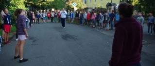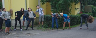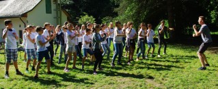 A Nyugatiból indultunk, jó nagy volt a nyüzsgés, szülők búcsúzkodtak a gyerekektől, az osztályfőnökök próbáltak minket összeterelgetni, sorban érkeztek a mentorok is. Végül elindultunk. Az egyórás vonatút után átszálltunk a kisvasútra, ami elvitt a szállásig. Megérkezésünket követően csapatokba osztottak minket, mi Barnit és Csongit kaptuk csoportvezetőknek, akik nagyon jó fejeknek bizonyultak a későbbiekben. Csapatnevünk a” Csütörtökig a Föld körül lett”, mert addig tartott a tábor, és a téma a kontinensek volt. Különböző állomások vártak bennünket, ahol más-más országokkal kapcsolatos feladatokat kellett megoldanunk.
