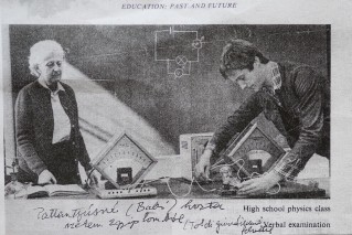 A megannyi ritkaságszámba menő fotó mellett, amelynek többségét Rajky tanárnő készítette, egy újságkivágás tűnik a legegzotikusabbnak. A cikk a Hungarian Digestben jelent meg az 1970-es években. A képen fizikaóra zajlik, egy diák kísérletet végez, a táblán áramkör, a kép bal oldalán Rajky Emma. A kép alatt Rajky Emma kézzel írott megjegyzése: Pattantyúsné (Babi) hozta nekem Egyiptomból (Toldy gimnáziumi felvétel). Pattantyúsné a Bagi Ilona Leánygimnázium tanára, későbbi igazgatója, Rajky Emma ottani kollégája volt. Az újságkivágás hátoldalán egy angol nyelvű interjú részlete maradt fent, amely a magyar érettségi reformokról, valamint a diákok terheinek tervezett csökkentéséről szól. A fénykép publikálásának körülményeit homály fedi.