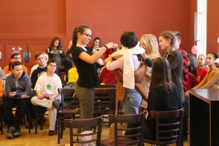 A szokásos nyitó előadás után, ami most egy kis mese bemutatása volt, közös tánctanulással és ügyességi versenyekkel indítottuk a délutánt. Természetesen minden vendég gyermek kapott toldys párt, akivel végiglátogathatta az osztályok által előkészített állomásokat. Jó volt látni ahogy oldódott a kezdeti feszültségük és rövid idő elteltével már kéz a kézben járták az iskola termeit a fogadó diákokkal. Az állomásokon a jól bevált arcfestés, origami, csillámtetoválás és sütikészítés mellett idén volt lufifestés, álarc díszítés, activity és Hamupipőke verseny is.