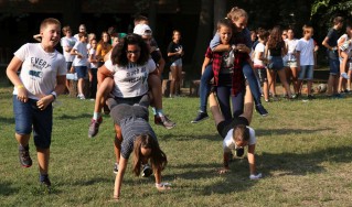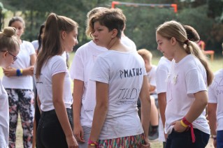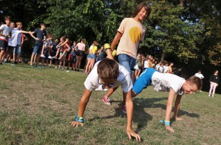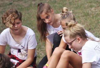 Ezután rögtön kezdődtek a foglalkozások, a 89 (2-en nem jöttek el) friss toldyst 10 darab 9 fős csoportba osztottunk el, csapatonként 3-4 végzőssel. Az egész tábor viking tematikát kapott, így minden csapat egy szín mellé egy saját rúnát is kapott. A rúnák voltak a karakterek a vikingek írásformájában, mint egy abc, ahol minden jel egy-egy szót vagy fogalmat szimbolizált. Az ismerkedős játékok után nem maradhatott el a megszokott pólórajzolás sem, majd ebédeltünk. Délután sorversenyt tartottunk, ami szuperül sikerült az ötletes csapatfeladatoknak köszönhetően. Este természetesen volt tábortűz és éneklés, és ahogy a Toldyban szokás, a ZTM sem maradhatott ki az elsősök beavatásából, ami az első estén Mamma Mia tematikát kapott.