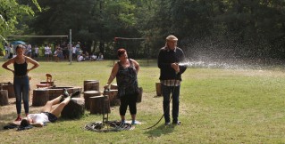 A hosszú és fárasztó este után az utolsó reggeli torna kicsit később kezdődött mindenki örömére. Reggeli után rúnapárbaj kezdődött a csapatok között, kvíz formájában. El lehetett nyerni egymástól a címeket, ha a csapat több helyes választ talált el, mint a másik. Ez a program ebédig tartott, majd evés után megnézhettük a 10 színvonalas előadást, ahol bizonyították a „fiatalok”, hogy a színjátszó fesztivál sem lesz nekik probléma 2 év múlva. És nem utolsó sorban egy-két teátrumba illő alakítást is láthattunk, remélem lesz még hasonlóban részünk. A színdarabok után elbúcsúztunk az Árnyas Sziget tábortól és Horánytól, majd a 3 busz visszaindult Budapestre. Az eseménydús hétvége után mi öregek kidőltünk a fáradtságtól, de reméljük, hogy az első toldys élmény az új évfolyamnak örökre felejthetetlen marad.