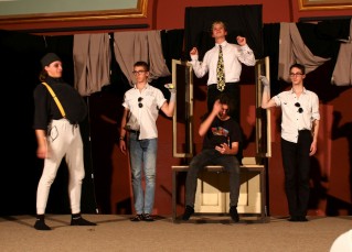Valószínűleg nem tévedek, ha azt mondom, hogy egy "Übü király" című darab esetében legtöbben először egy klasszikus királydrámára gondolunk. Az 5.b. osztály előadása azonban egészen más képet tár a szemünk elé; egy polgárpukkasztó és megbotránkoztató történet segítségével tükröt tart az emberi társadalomnak. Utólagos keresésem eredményeként megtudtam, hogy ez a darab korszakalkotó volt a saját idejében, sokan az abszurd dráma előfutárának tekintik. Emiatt a tény miatt is különösen értékelem az osztály darabválasztását, mert akármennyire is könnyűnek tűnik kívülállóként, abszurd művet nem könnyű színpadra vinni; időt kell fordítani a színészi mimika, hanghordozás és mozdulatrendszer kialakítására. Az egyértelmű túlzások kifejezése mellett figyelni kell arra is, hogy ne essünk át a ló másik oldalára sem; a szerepek túljátszása ennél a műfajnál is zavaró lehet.