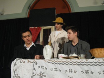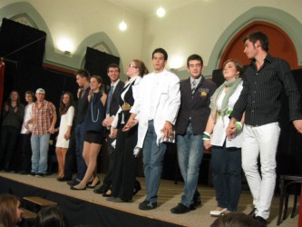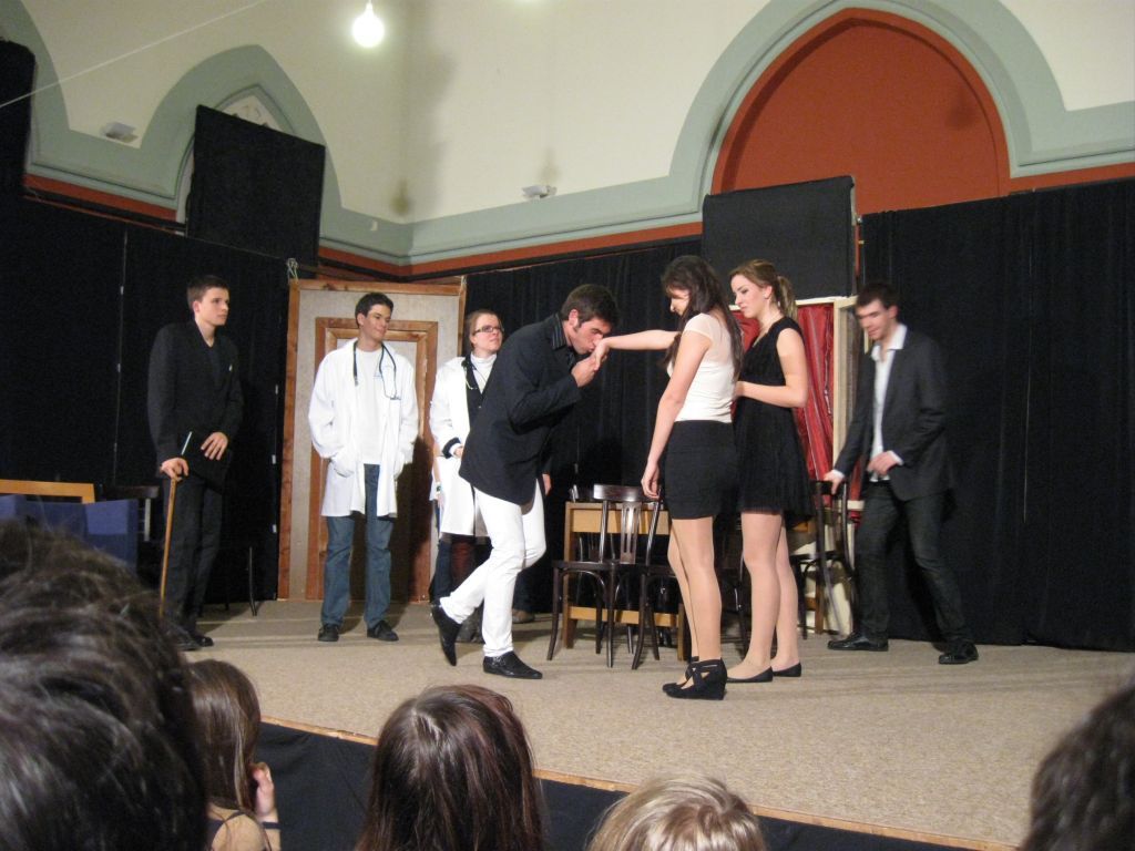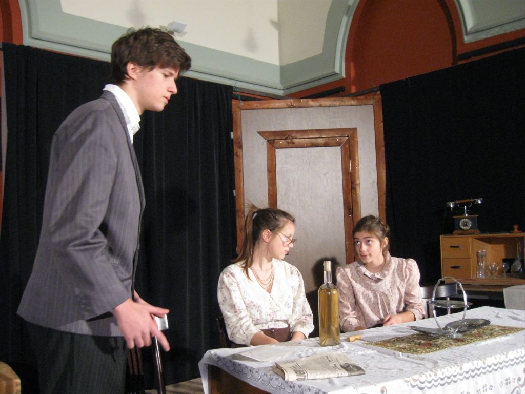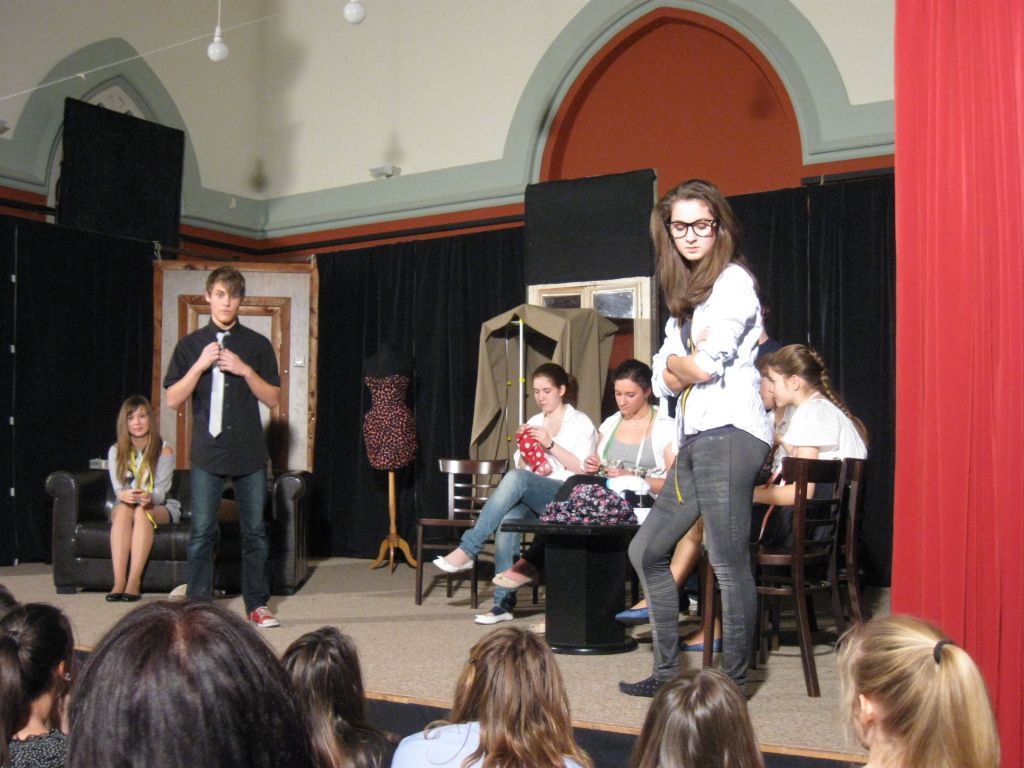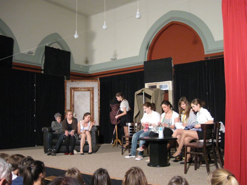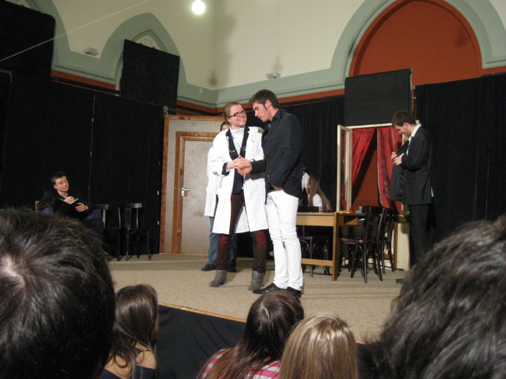 Viszont! Mint oly sok dolog az életben, ennek is két oldala van. A darab hosszúságával egyenes arányban növekszik a beleölt rengeteg munka, fárasztó nulladik órák, még fárasztóbb az őszi szünetet erre áldozni, ám a rengetek munkának egyértelműen meglett a gyümölcse. Rendkívül szórakoztató előadásban volt részünk, a két és fél órás előadás alatt csak azért nem szabadult el a pokol a sorok között, mert tényleg egy nagyon érdekfeszítő és szórakoztató darabot láthattunk. Ami nekem feltűnt, hogy sokszor volt egy-egy embernek rendkívül hosszú monológja, amit meg a legnehezebb megtanulni. Ezeket is mind hibátlanul adtátok elő. Gratulálok!