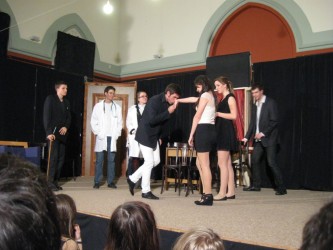 Utoljára az 5.a-t láttam, akik Gogoltól a Revizor című, több szempontból is felejthetetlen előadást mutatták be. Felejthetetlen volt kivétel nélkül mindenki a színpadon, és felejthetetlenül hosszú volt! Az egyetlen kritikával kezdeném, azaz hogy szerintem nem szabadott volna ilyen hosszú darabot választani, illetve nem választani nem kellett volna, hanem jócskán meghúzni. Az első felvonásban másfél óra után már lehetett érezni, hogy a közönség figyelme egy kicsit meglazul, halk beszélgetés, állandó székrecsegés… Sajnos ez hiba volt.
