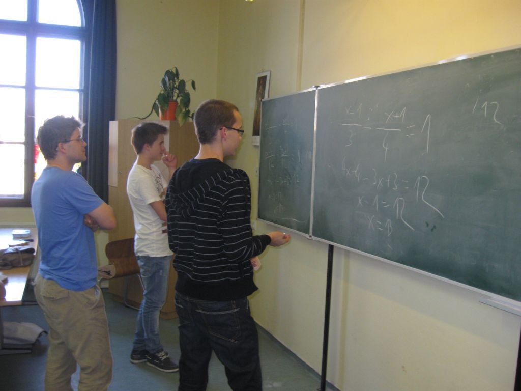 Három villámkérdés után párbajok kezdődtek az osztályok között. Az évfolyam két osztályának csapatából egy-egy főnek, a tábla két végén, ugyanazt a bonyolult algebrai kifejezésekből álló egyenletet kellett megoldania. Itt a csapattársak véleménye nem befolyásolta a játékosokat, azonban az idő hiánya itt is jelentősen megnehezítette a feladatot. Jó érzés a feladatok nehézségi szintjét a korral arányosan növekedni látni.