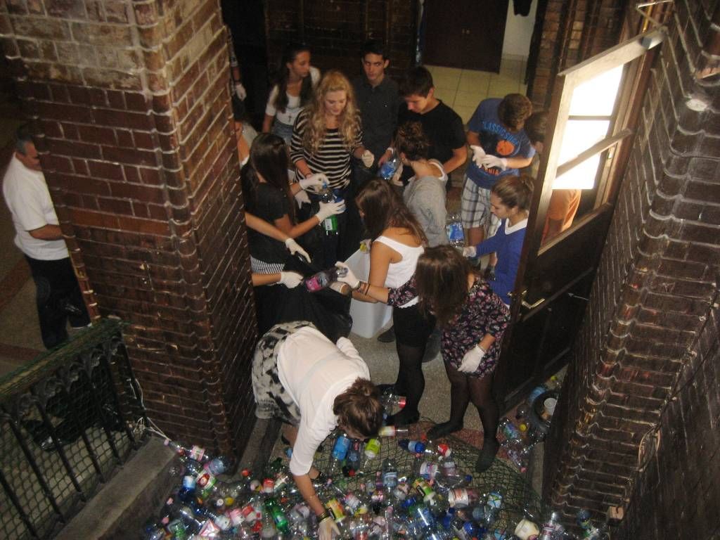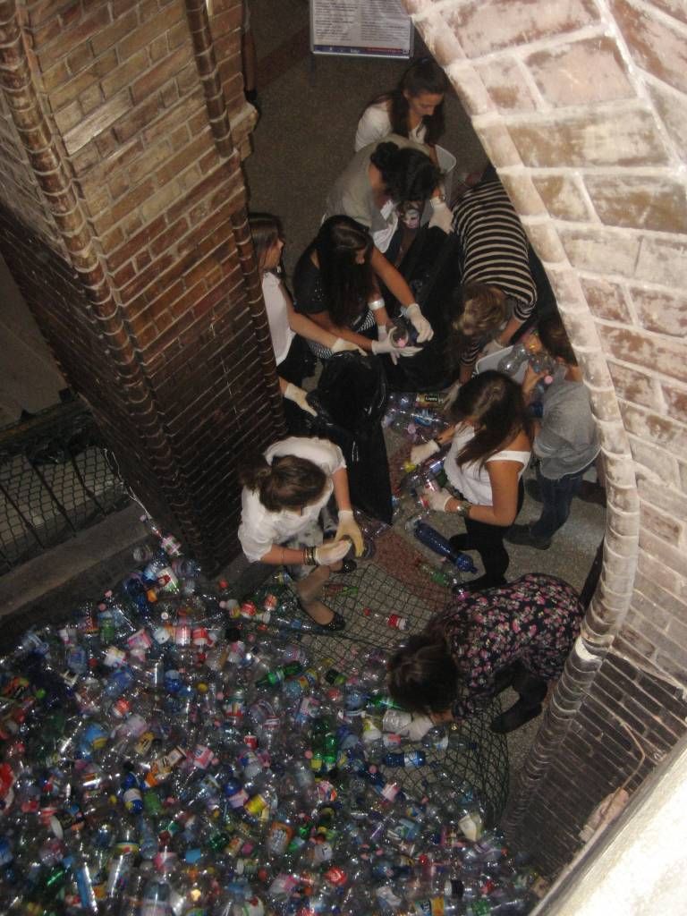 Néhány hete, amikor beértünk az iskolába, mindenki csodálkozva nézett a lépcsőház közepére felszerelt hálóra. Kis kérdezősködés és az osztályfőnöki óra után megtudtuk, hogy a következő napokban az lesz a feladatunk, hogy minden ÜRES műanyag palackot dobjunk be oda!