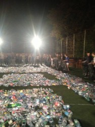 Persze akadt néhány érdekes ember, aki nem értette meg a feladatot, és vagy összetaposva, vagy félig tele dobta be a palackokat… De ezzel is megbirkóztunk! 77 zacskót sikerült megtöltenünk (természetesen itt nem kis nejlon zacskókra, hanem nagy fekete kukás zacskókra kell gondolnunk, ami elég szép eredmény).