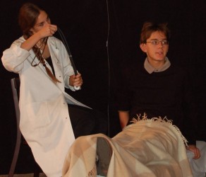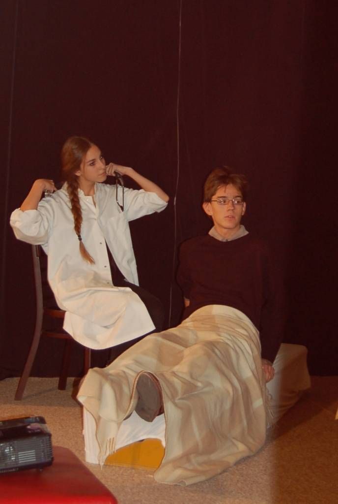 A program három elemből állt: az iskola kapuja előtt álló mentőkocsival és az I. emeleten látható emlékfallal a korhangulatot akartuk megteremteni, a dramatikus játékkal felidéztünk néhány jellegzetes esetet és helyzetet, s meghívtuk dr. Kovács Gábort – aki 1956 októberében és novemberében mentősként teljesített szolgálatot –, beszéljen társainknak emlékeiről.