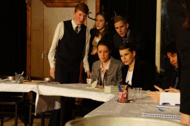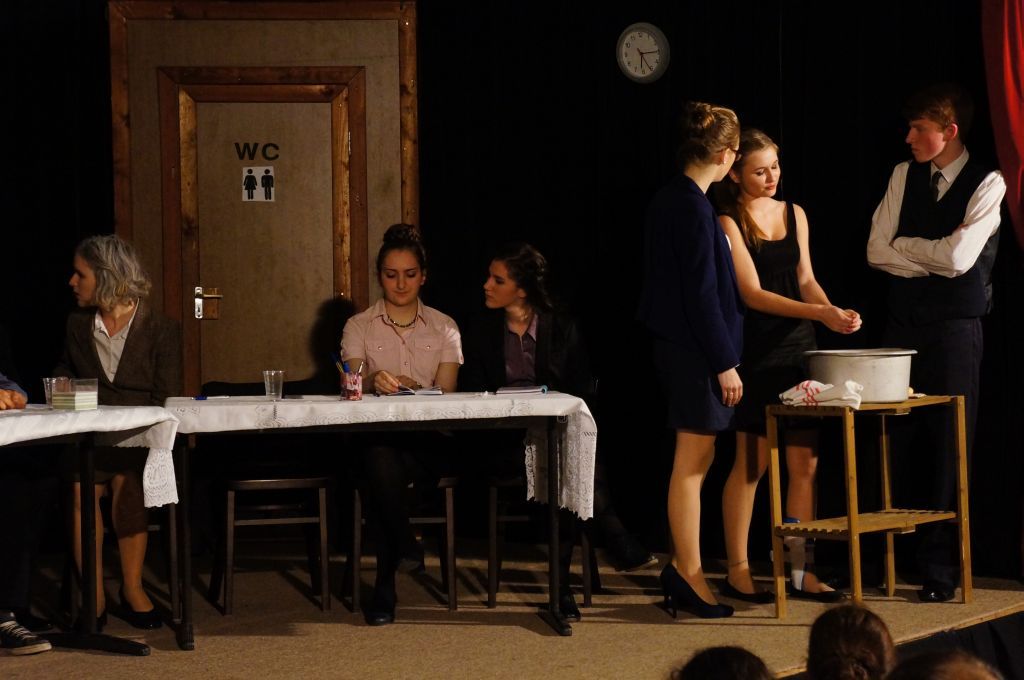 Az idén egy kevésbé „mozgalmas” darabot választottak, a szereplők szinte a darab egészében ültek egy asztal körül. Ennek ellenére az előadásuk nem volt unalmas. Remek színészi játékkal, jól megtanult szöveggel és kidolgozott, átélt karakterekkel kápráztatták el a nézőket. Egyetlen hibának csak azt tudnám felróni, hogy a hangeffektek néha túl halkak, néha túl hangosak voltak és így nem mindig váltak a darab előnyére.