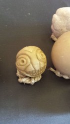 Kedvenc anyaga a fa (a kiállításon tényleg a fából készült művek voltak a legjellemzőbbek), majd a kő, a csont illetve a fém. "Bár a fémműveléshez még nem alakítottam ki itthon műhelyet, de már tervbe vettem."