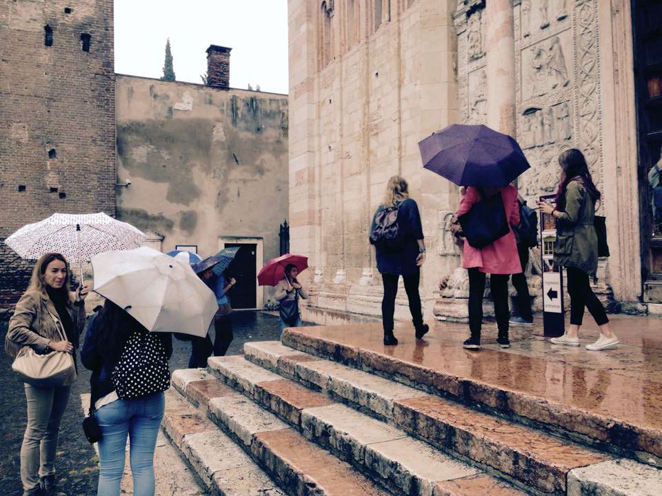Így hát kicsit rosszkedvűen folytattuk utunkat Velencéből Veronáig egy kb másfél órás buszút keretében. Végül kirakott minket a veronai Galileo Galilei Gimnázium előtt. Mivel kicsit korábban érkeztünk a tervezettnél (köszönet a pilótának), vendéglátóink még nem voltak jelen, de szép lassan egyesével végül mindenkiért eljött a saját családja és túlestünk a bemutatkozáson. Mindenki rendkívül izgatott volt, és persze mindenki örült, hogy viszontlátja külföldi barátját, akivel tavasszal egy hétig elválaszthatatlanok lettek. (Ez velem sem volt másképp.)