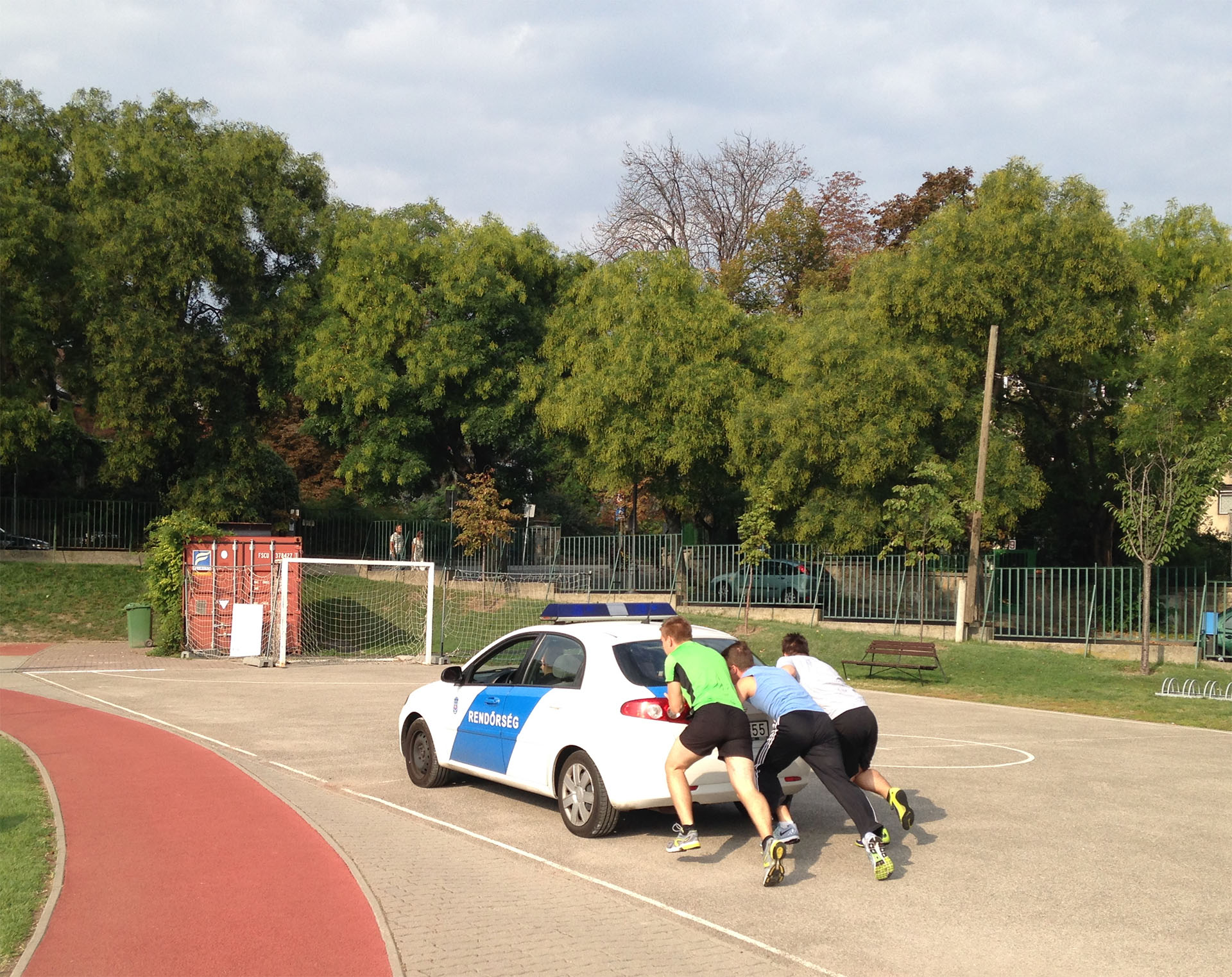 A rendőrautó tolása a lehető legrövidebb idő alatt szintén egy igen élvezetes és látványos versenyszámnak bizonyult.
