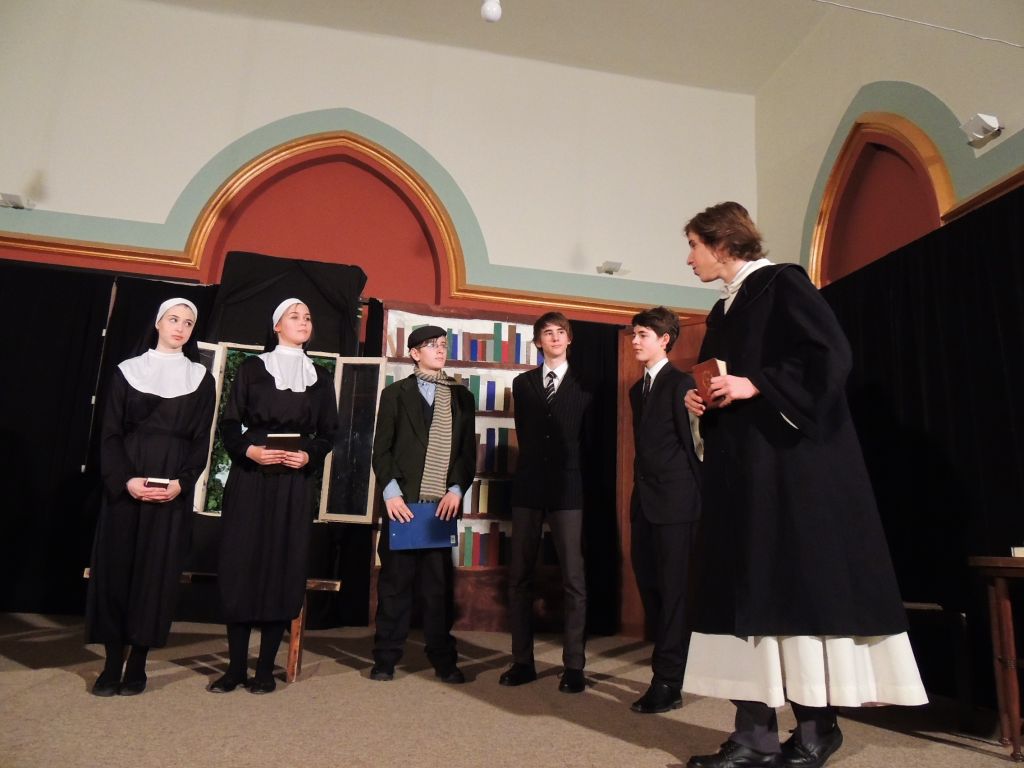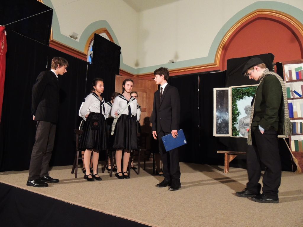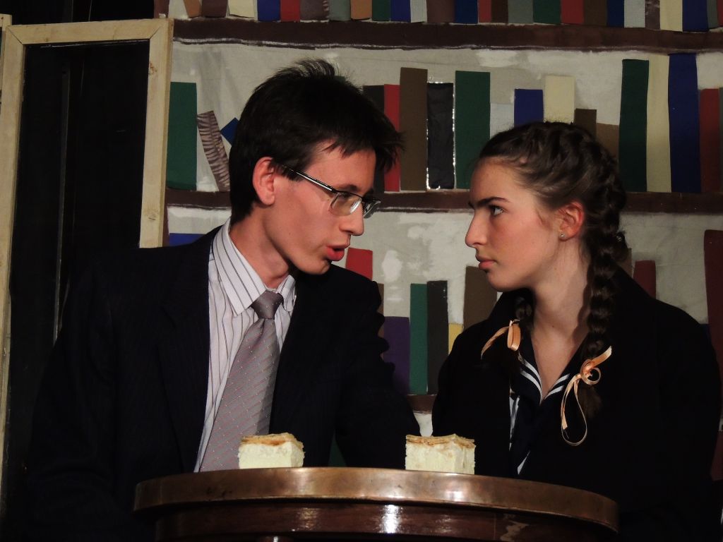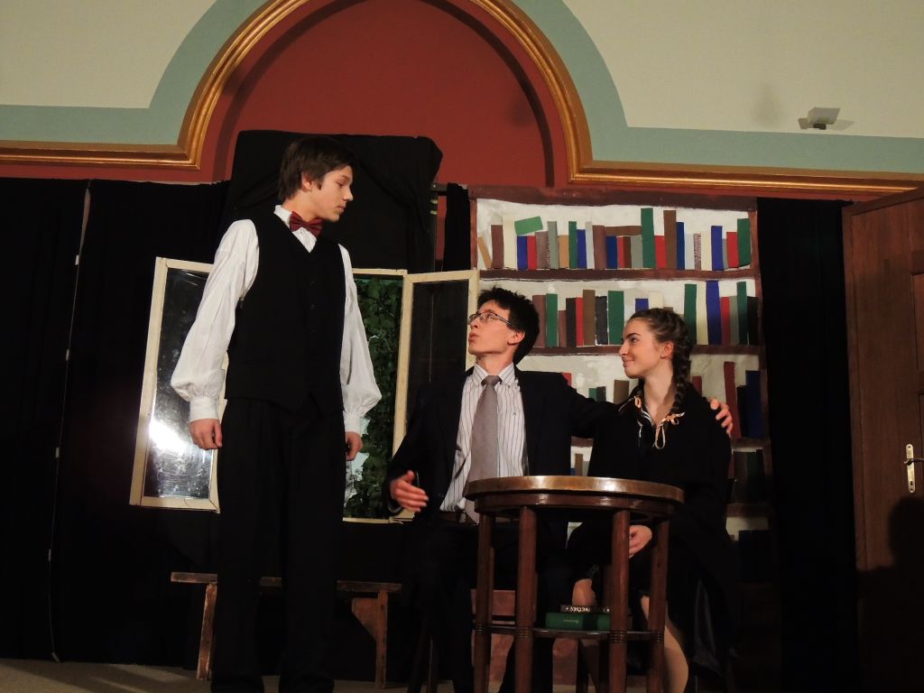 De így is tudtunk a színészi játékra, a díszletre és az ötletes megoldásokra figyelni. Annak ellenére, hogy az osztály először állt színpadra, nagyon erős társulatot láthattunk, többnyire pontos szövegtudással és színpadi képpel, ami ennél a darabnál különösen fontos volt. Mivel a cselekmény sok helyszínen játszódik, ezt is jól megoldották: gyakran egy-egy kisebb jelzéssel hozták a közönség tudtára, hogy változott a helyszín.