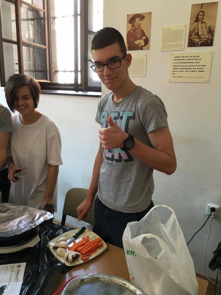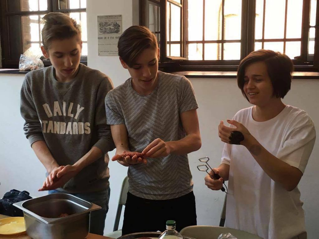 Amint beszabadultunk, kisebb csoportokban azonnal nekiláttunk az ételek elkészítésének Berkó tanárnő segítségével.