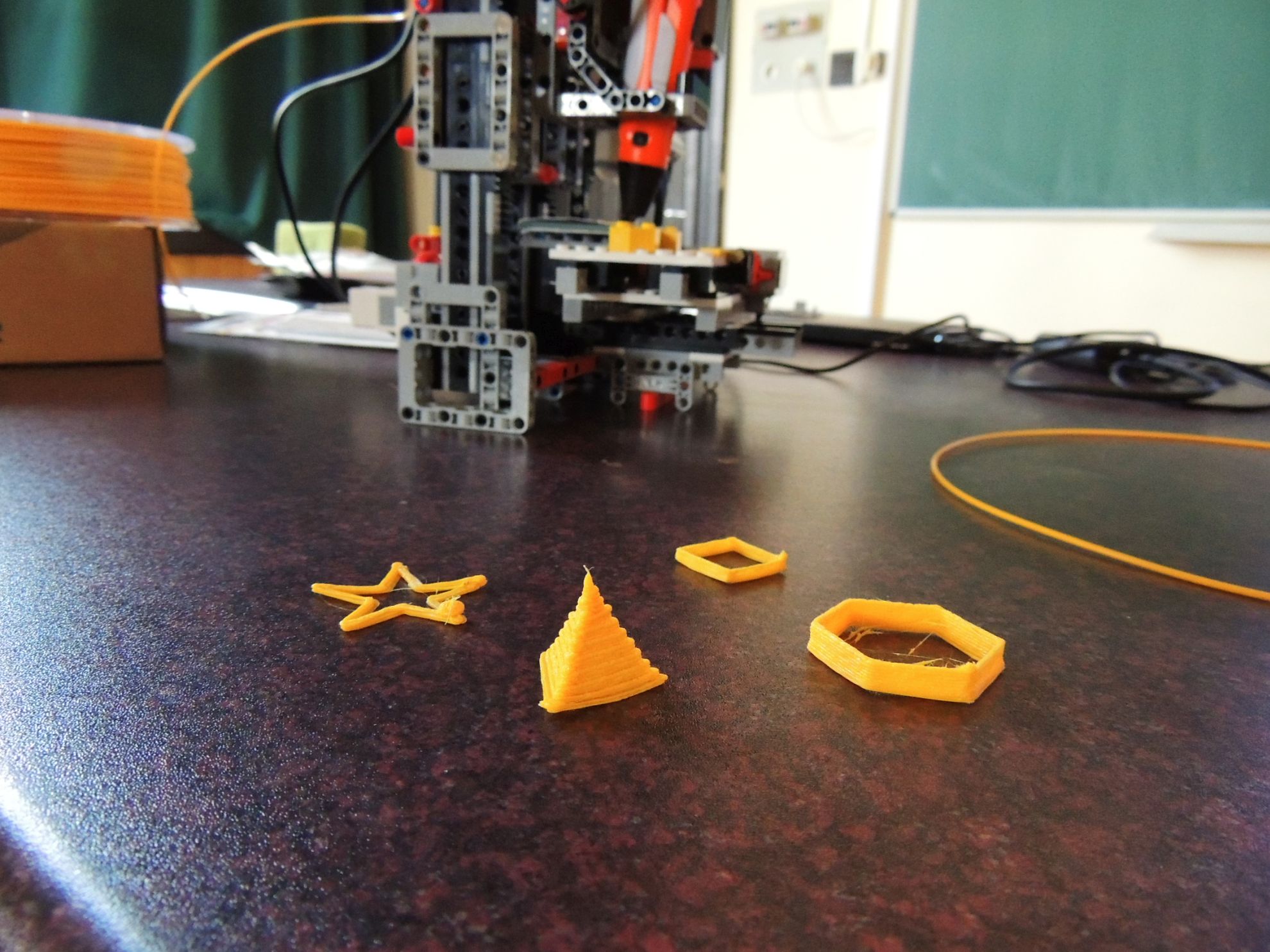 A 3D nyomtatás rövid történetének és technikai alapjainak bemutatása után a közönség működés közben is megtekinthette a legó elemekből készített nyomtatót. Az érdeklődők közelről is megcsodálhatták, ahogy néhány egyszerű alakzatot kinyomtatott a gép.