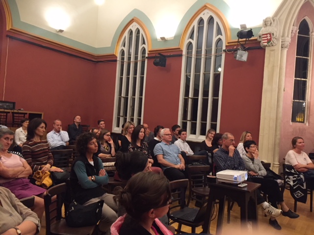 Az előadást követő sütizés és salátázás során aztán kisebb körökben beszéltük meg a felvetődött izgalmas problémákat. Ha megválaszolni nem is tudtuk azokat a bizonyos fejünk felett lebegő kérdéseket, már a róluk való gondolkodás is komoly szellemi időutazás és intellektuális kaland volt.