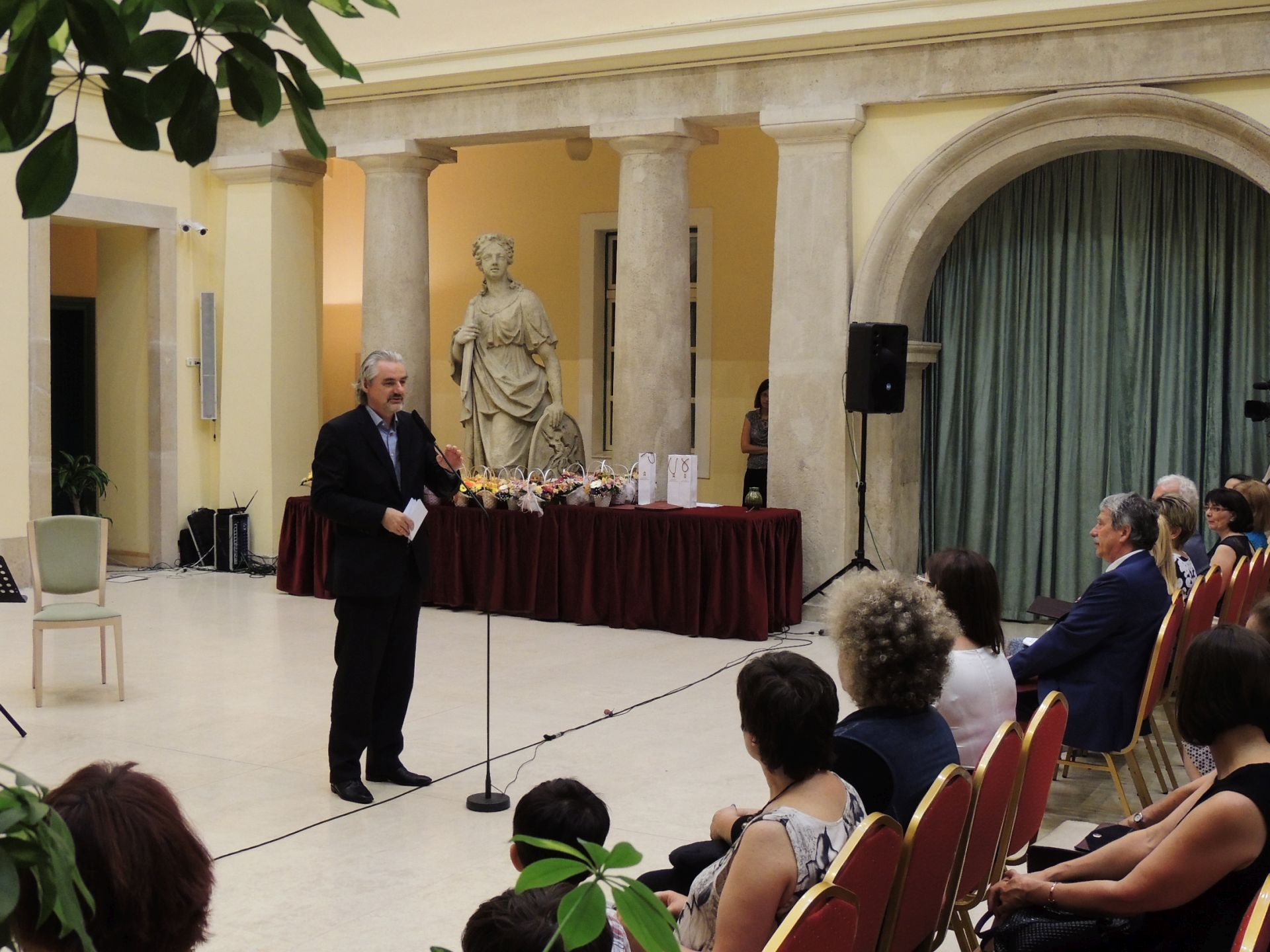 Május 31-én a Budavári Önkormányzat aulájában Varga Antal alpolgármester megjutalmazta a kerület kiváló pedagógusait. A kerületi Virág Benedek Díjat idén iskolánk igazgatóhelyettese, Takács Zoltán kapta. A díjazottról Porogi András mondott laudációt, majd Takács Zoltán mondott köszönő szavakat feleségének és toldys kollégáinak, akik hozzásegítették ehhez az elismeréshez. Ugyancsak megemlítette egykori mesterét, Pataki Gyula igazgató urat, akitől a toldys közösség iránti elkötelezettséget örökölte.