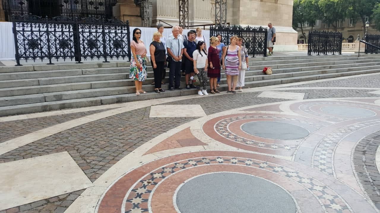 3. nap. A gimnáziumban elköltött reggeli után a Bazilikában tettünk mintegy háromórás látogatást. Szakértő idegenvezetőnktől mérhetetlenül sok érdekességet hallottunk. Mégpedig nem szárazon, adatokat gépiesen fölsorolva, hanem igazán élvezetesen, meseszerűen előadva. Lévén szó pedagógus látogatókról, a hölgy külön is ügyelt arra, hogy egy-egy gyerekcsoporttal kapcsolatos tapasztalatait is megossza velünk. Nemegyszer elképedve hallgattuk, egyik-másik történelmi eseménnyel, itt őrzött képpel, szoborral, más ereklyével kapcsolatban micsoda elképesztő, ugyanakkor igen logikus képzettársításokat hallott már a vezetőnk gyerekek szájából. A rövid orgonakoncertek még emlékezetesebbé tették látogatásunkat, melynek szerves részét képezte természetesen a Szent Jobb megtekintése is. Ugyanakkor volt bazilikabeli programunknak két meglepetés pontja is. Mert ahogy azt rá jellemző utánozhatatlan humorával Takács Zoltán kifejtette: „egy toldys mindent elintéz”. Ennek szellemében jutottunk el az altemplomba és a harangtoronyba is, ahova átlagos turista nemigen szokott bebocsátást nyerni.