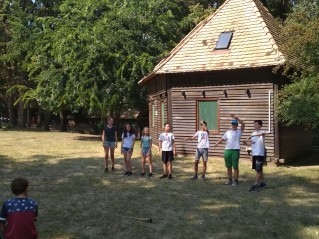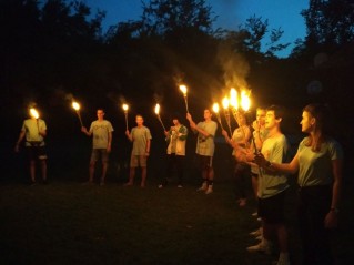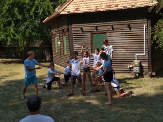 Másnap 7 óra körül a végzősök keltettek minket, a napunk, egy váratlan fordulattal, reggeli bemelegítő gyakorlatokkal, futással vette kezdetét (remek ötlet…). Ezt követően Zsófi és Dóri vezetésével mentoraink országok szerinti csoportokba osztottak minket, s kezdetét vette a horányi Toldylimpia!