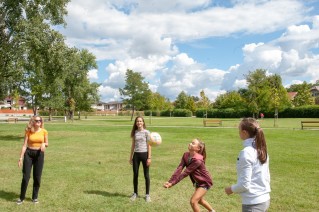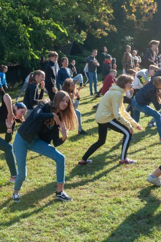 9:25-kor elindult a vonat a Nyugatiból (a 72 gólyával az ismeretlen felé). Mindannyian azzal a jól ismert gombóccal a torkában feszengtünk az üléseken. Mint egy kiöntött kávés incidens után kiderült, nem csak mi izgultunk. Hamarosan leszálltunk a vonatról, és elsétáltunk egy zöldellő rétre, ahol játékok keretében elkezdtünk megismerkedni.
