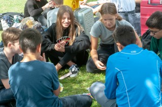 Másnap reggeli után boltba mentünk, ahol be lehetett vásárolni, majd folytatódtak a programok és az ismerkedés. Délután számháború követte az állomásokat. A vacsorát a 12-esek főz-ték bográcsban. Nagyon finom volt!