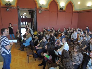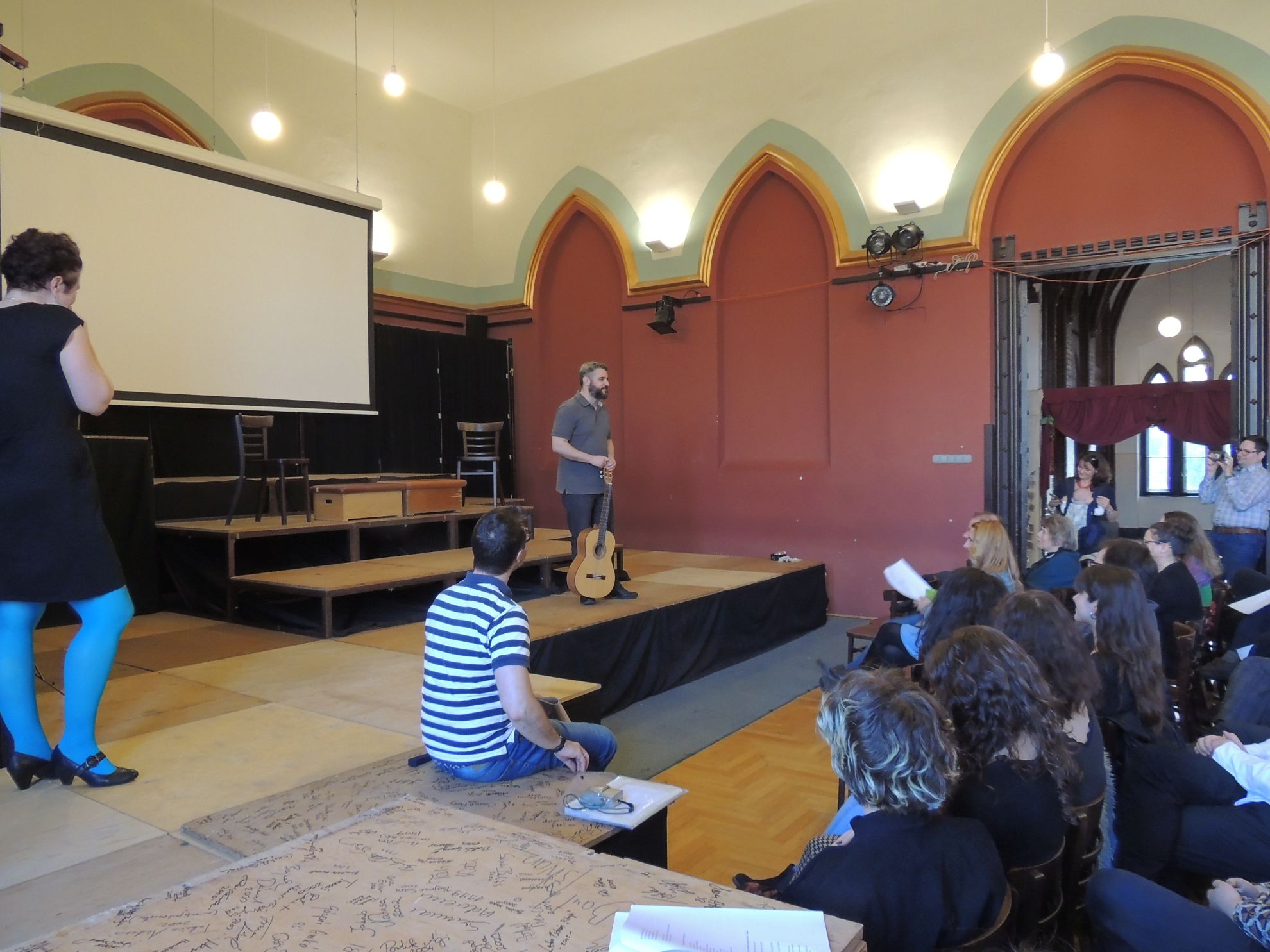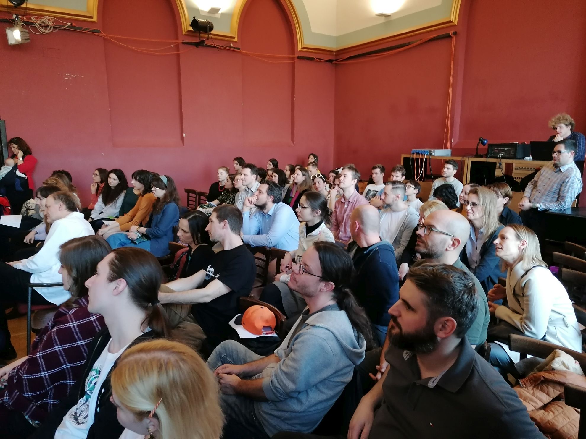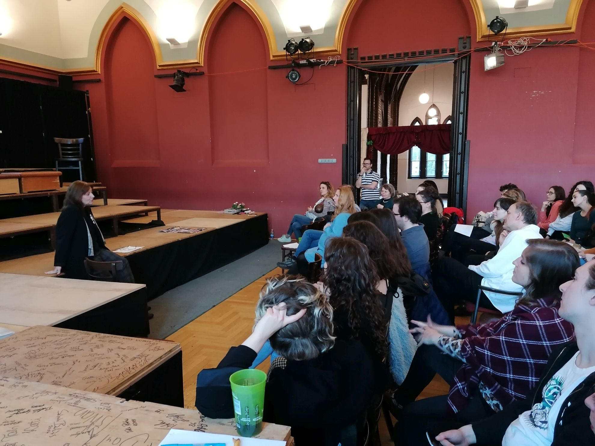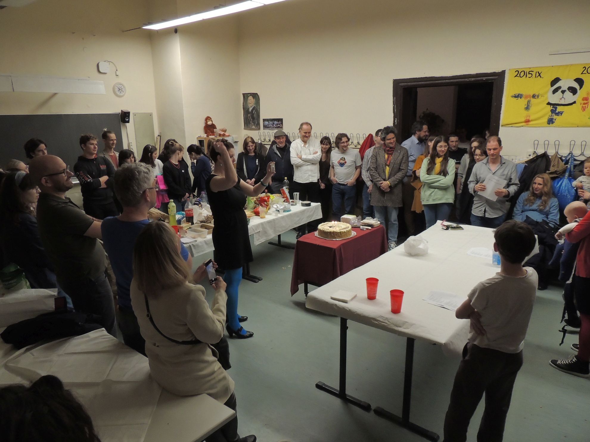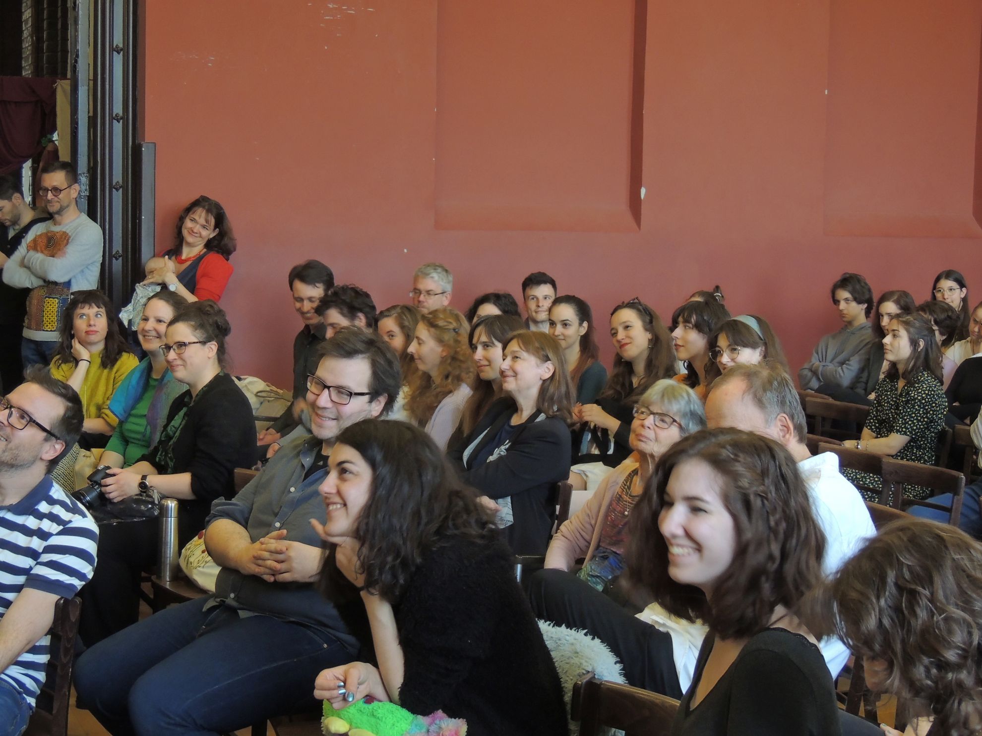 Ezen a szombaton közel száz volt és jelenlegi teátrista, valamint a gimnázium néhány egykori és jelenlegi tanára gyűlt össze a Díszteremben, ahol Porogi András igazgató úr üdvözölte a vendégeket.