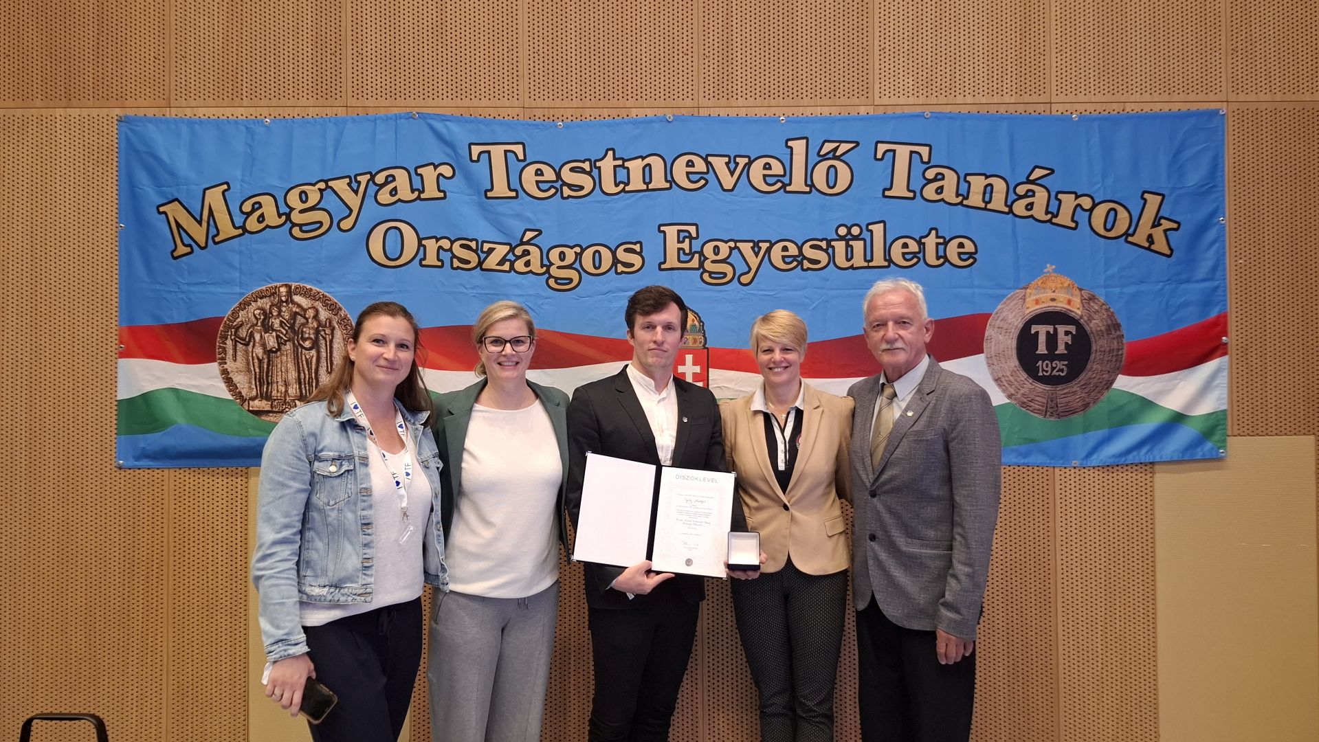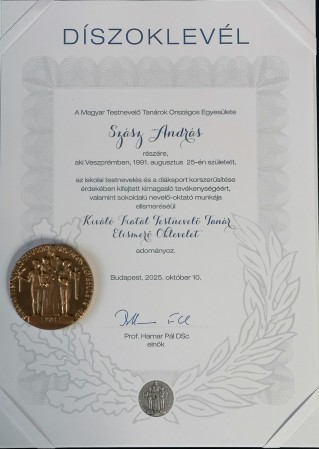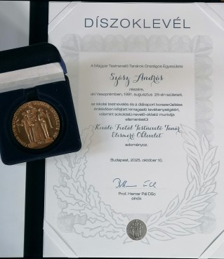 Az idén fennállása 100. évfordulóját ünneplő Magyar Testnevelési és Sporttudományi Egyetem és az 1881-ben alapított Magyar Tornatanítók Egyletének jogutódja, a Magyar Testnevelő Tanárok Országos Egyesülete által szervezett és 2025. október 10-én tartott Testnevelő Tanárok Ünnepe alkalmából rendezett konferencián díjakat adtak át azoknak, akik a testnevelés és sport területén kiemelkedő munkát végeztek. Nagy büszkeségünkre iskolánk testnevelési munkaközösségének vezetője, Szász András tanár úr is a díjazottak között volt.